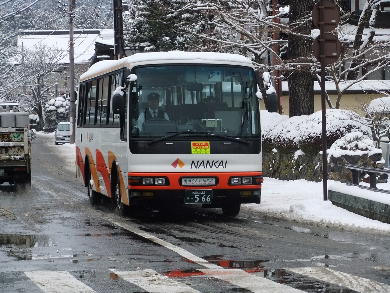 高野山駅前から大門、そこから高野山道路を下って花坂に向かう路線です。