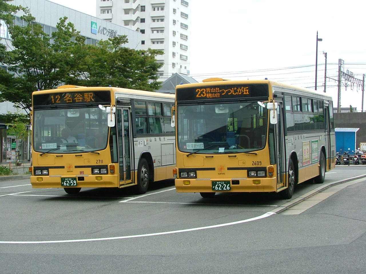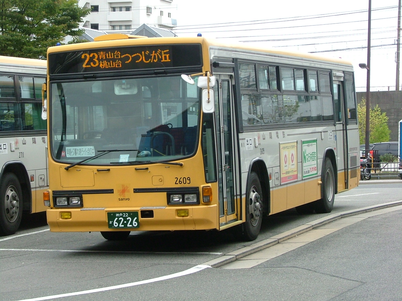 関西ではおなじみのスタイル、山陽バスの場合は前乗りも後乗りにもできる窓配置が特徴です。