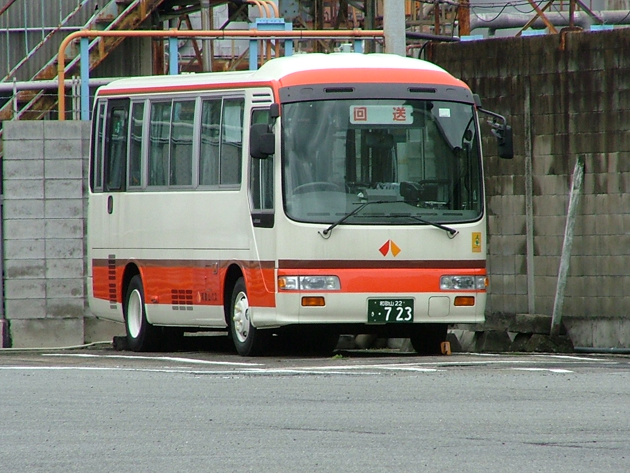 亀川線には専用車としてリエッセが運用されています。 海南駅前にて。 藤白浜まであと少しです。 海南藤白浜車庫にて。 722と723の2台が海南営業所に配置されています。 722も藤白浜で撮影しました。 中扉のリフトは装備されていません。